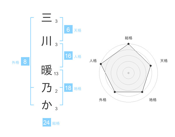 三川 暖乃かさんを姓名の画数から五運を鑑定