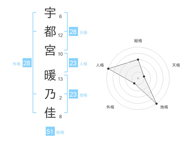 宇都宮 暖乃佳さんの総格は51画の3点!