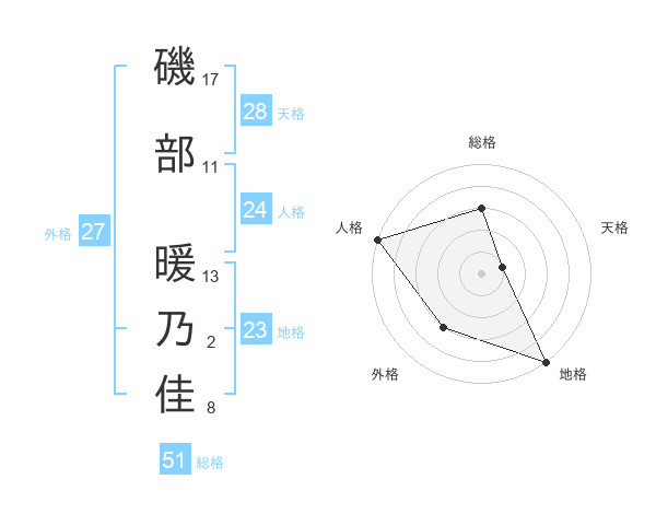 磯部 暖乃佳さんの総格は51画の3点