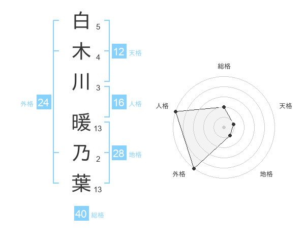 白木川 暖乃葉さんの外格は24画の5点!