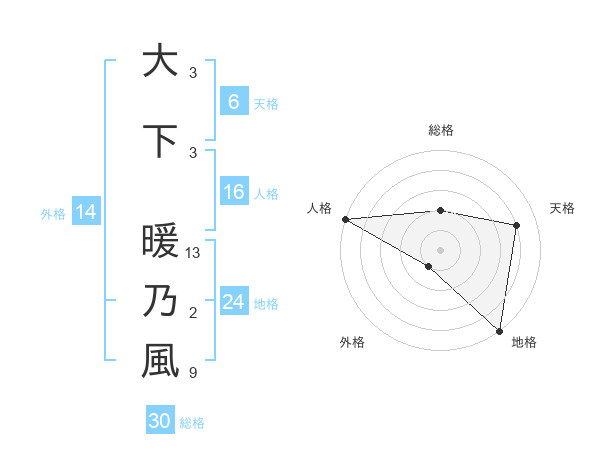 大下 暖乃風さんを姓名の画数から五運を鑑定