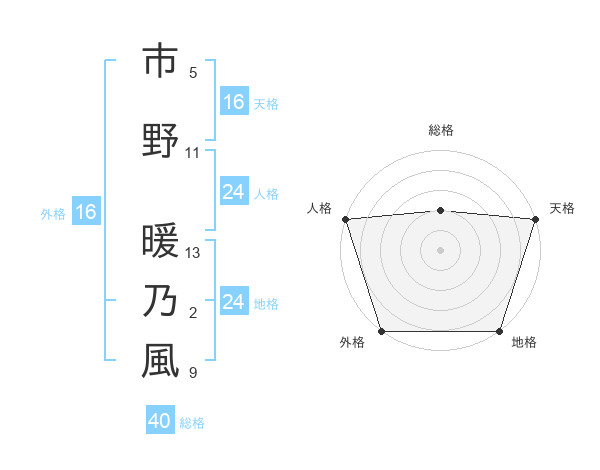 市野 暖乃風さんを姓名の画数から五運を鑑定