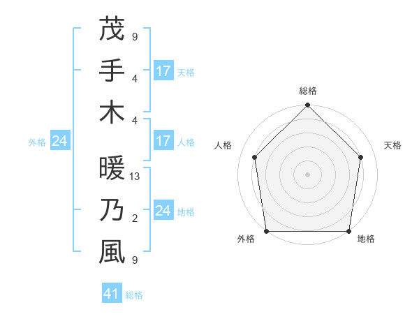 茂手木 暖乃風さんを姓名の画数から五運を鑑定