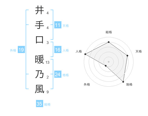 井手口 暖乃風さんの総格は35画の4点!