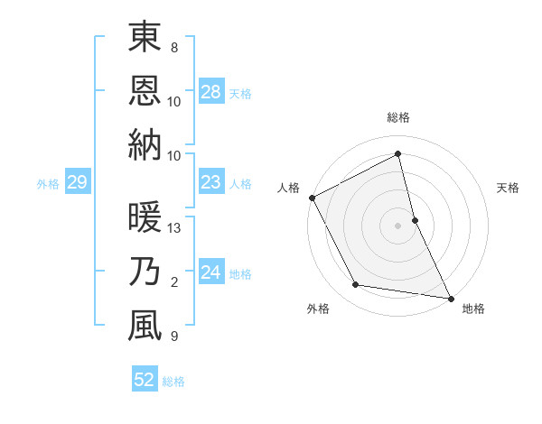 東恩納 暖乃風さんを姓名の画数から五運を鑑定