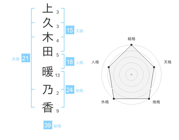 上久木田 暖乃香さんを姓名の画数から五運を鑑定