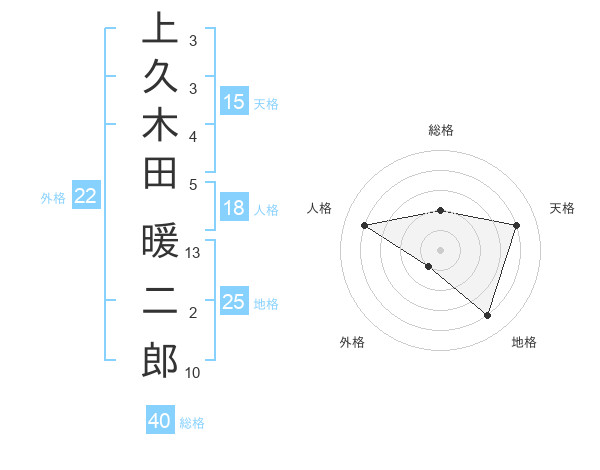 上久木田 暖二郎さんの総格は40画の2点