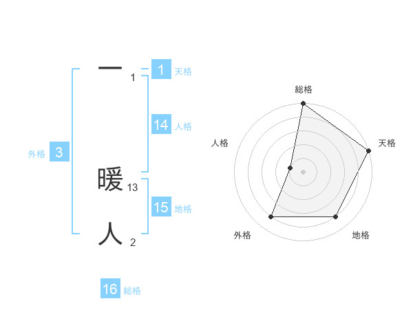 一 暖人さんの総格は16画の5点