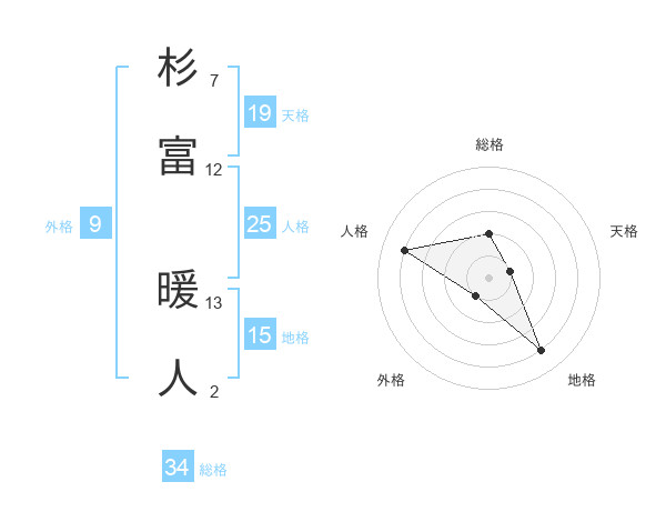 杉富 暖人さんを姓名の画数から五運を鑑定