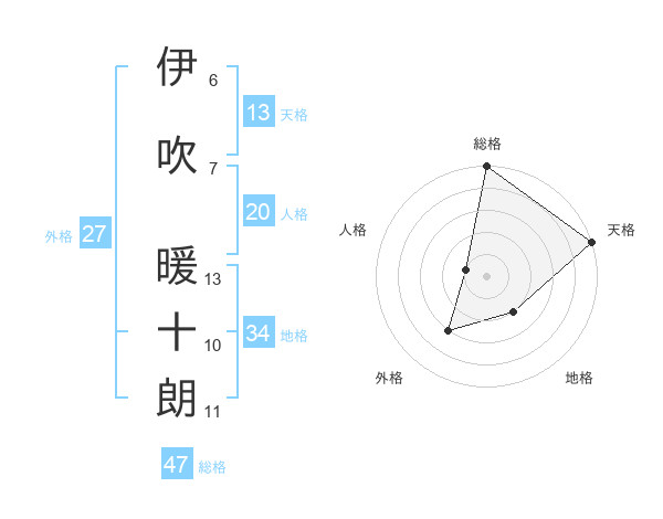 伊吹 暖十朗さんを姓名の画数から五運を鑑定