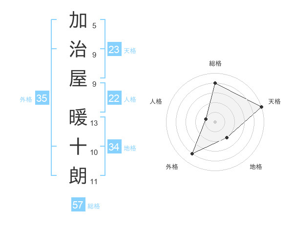 加治屋 暖十朗さんの総格は57画の4点