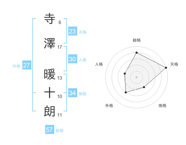 寺澤 暖十朗さんを姓名の画数から五運を鑑定