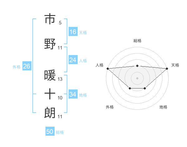 市野 暖十朗さんを姓名の画数から五運を鑑定