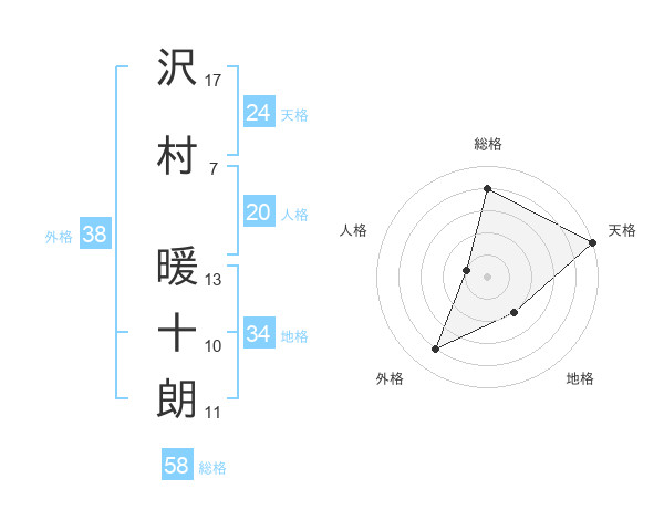 沢村 暖十朗さんを姓名の画数から五運を鑑定