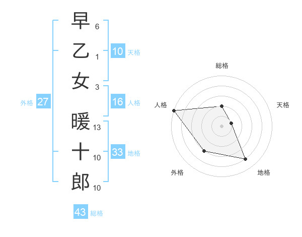 早乙女 暖十郎さんを姓名の画数から五運を鑑定