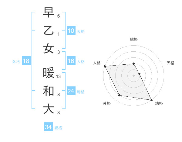 早乙女 暖和大さんを姓名の画数から五運を鑑定