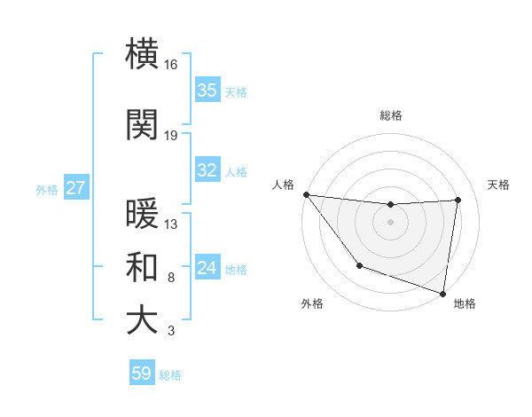 横関 暖和大さんを姓名の画数から五運を鑑定