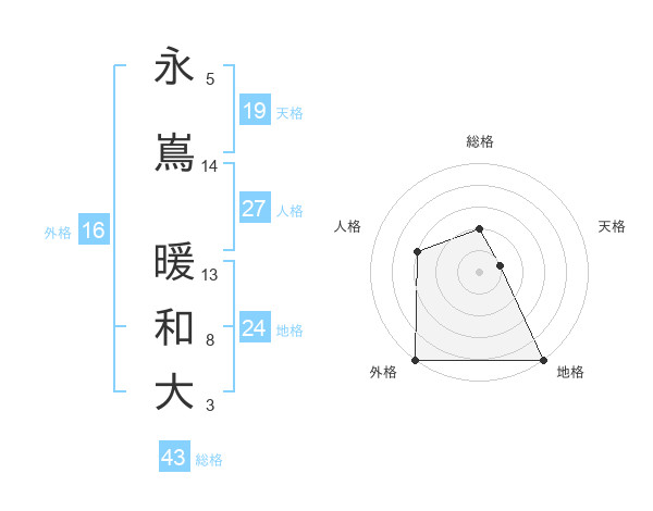 永嶌 暖和大さんの総格は43画の2点!