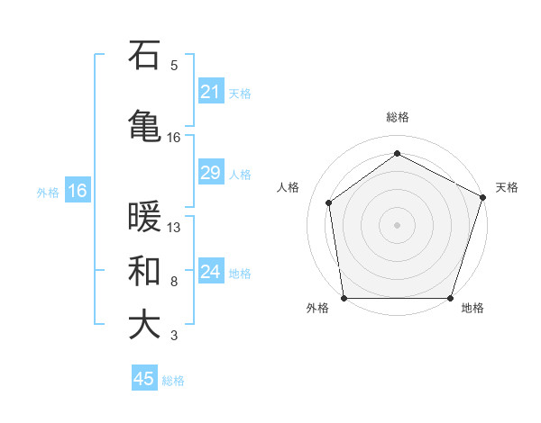 石亀 暖和大さんを姓名の画数から五運を鑑定
