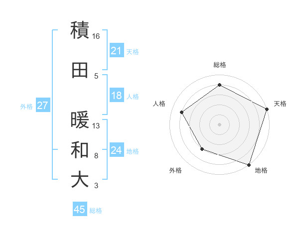 積田 暖和大さんの総格は45画の4点!