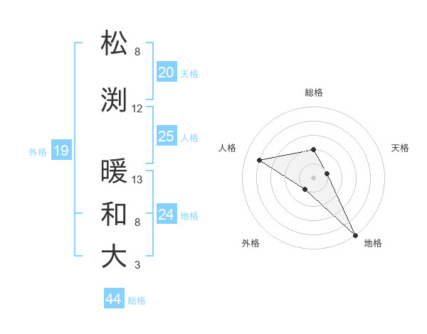 松渕 暖和大さんを姓名の画数から五運を鑑定