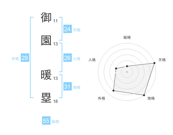 御園 暖塁さんを姓名の画数から五運を鑑定
