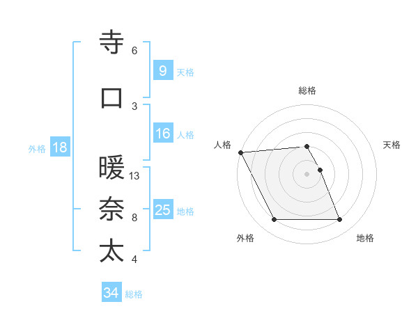 寺口 暖奈太さんの総格は34画の2点!