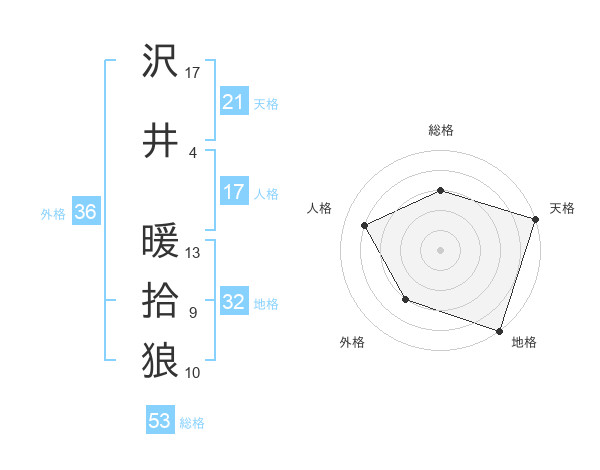 沢井 暖拾狼さんを姓名の画数から五運を鑑定