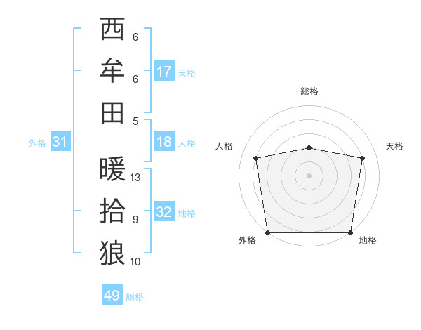 西牟田 暖拾狼さんを姓名の画数から五運を鑑定