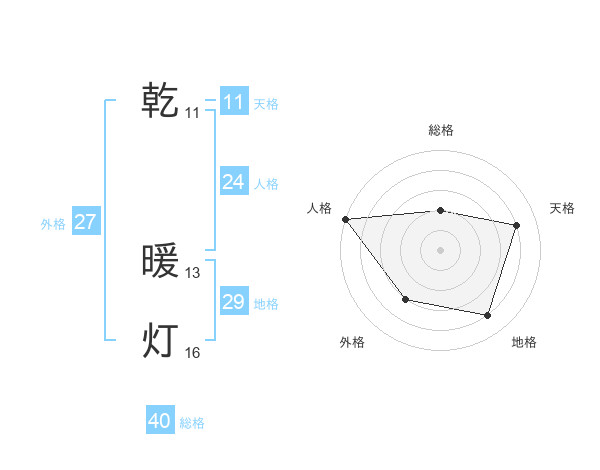 乾 暖灯さんの総格は40画の2点!