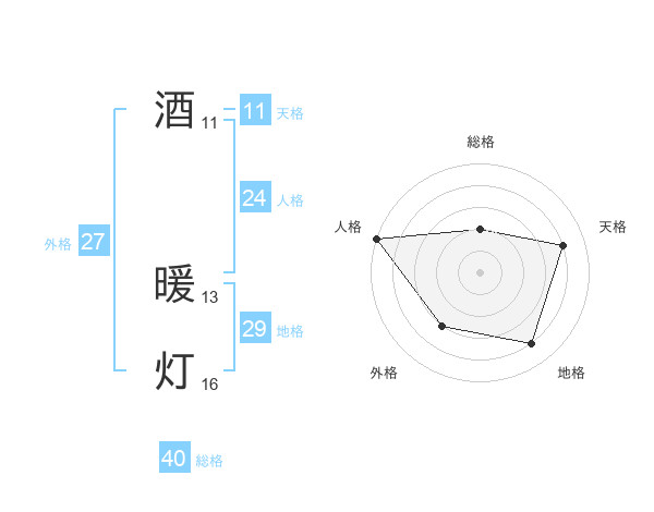 酒 暖灯さんの総格は40画の2点!