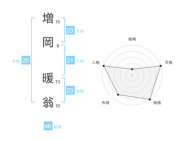 増岡 暖翁さんを姓名の画数から五運を鑑定