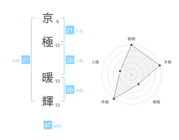 京極 暖輝さんを姓名の画数から五運を鑑定