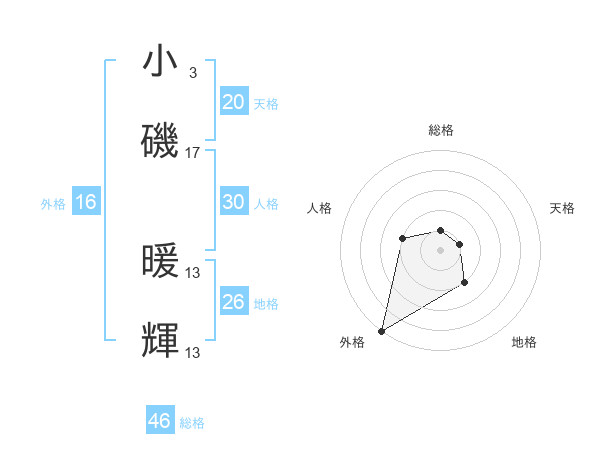 小磯 暖輝さんの天格は20画の1点!