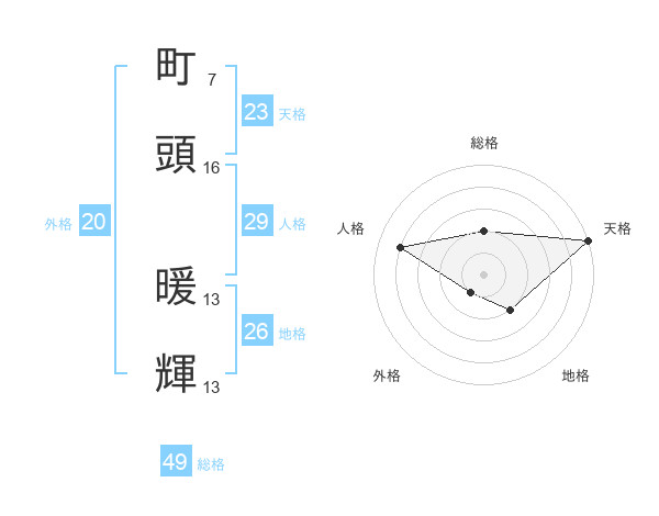 町頭 暖輝さんの天格は23画の5点!