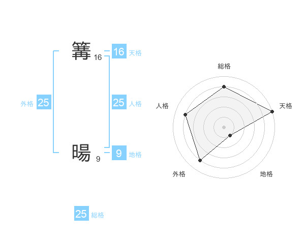 篝 暘さんの外格は25画の4点!