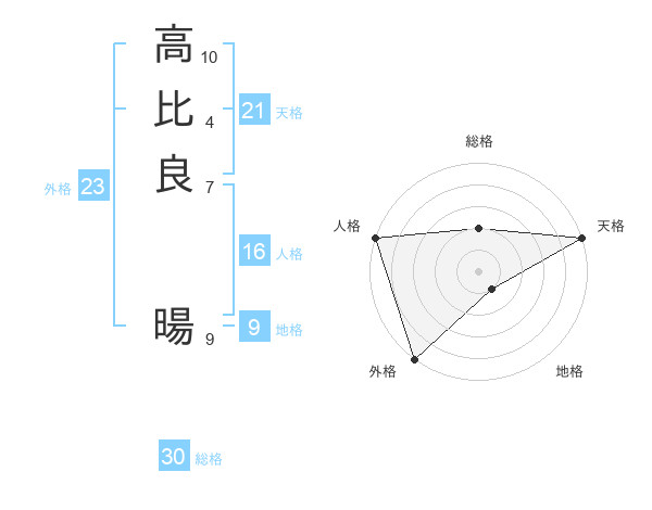 高比良 暘さんの天格は21画の5点!