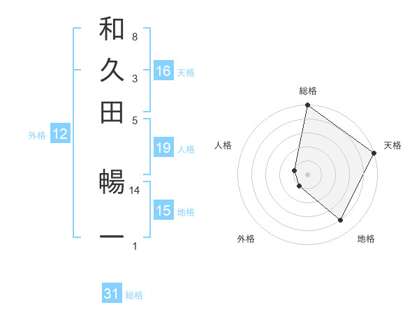 和久田 暢一さんを姓名の画数から五運を鑑定