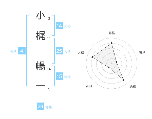 小梶 暢一さんの総格は29画の4点!