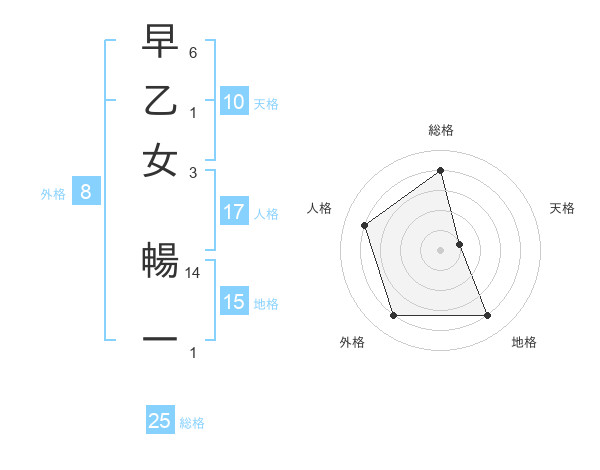 早乙女 暢一さんを姓名の画数から五運を鑑定