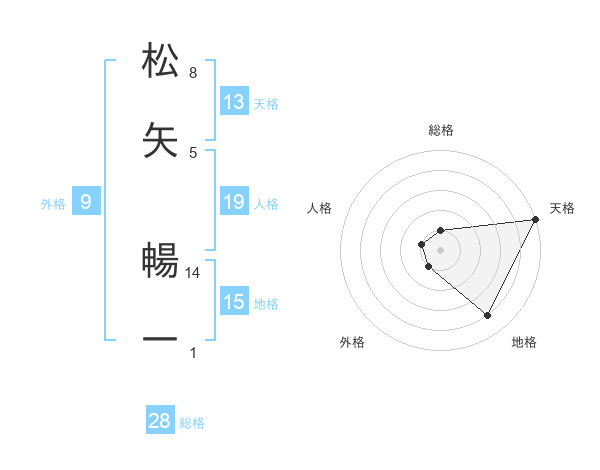 松矢 暢一さんの天格は13画の5点!