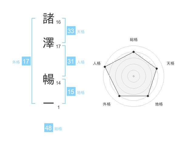 諸澤 暢一さんを姓名の画数から五運を鑑定