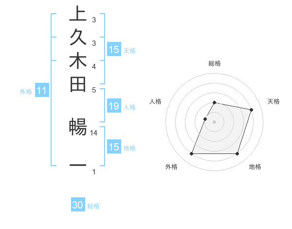 上久木田 暢一さんを姓名の画数から五運を鑑定