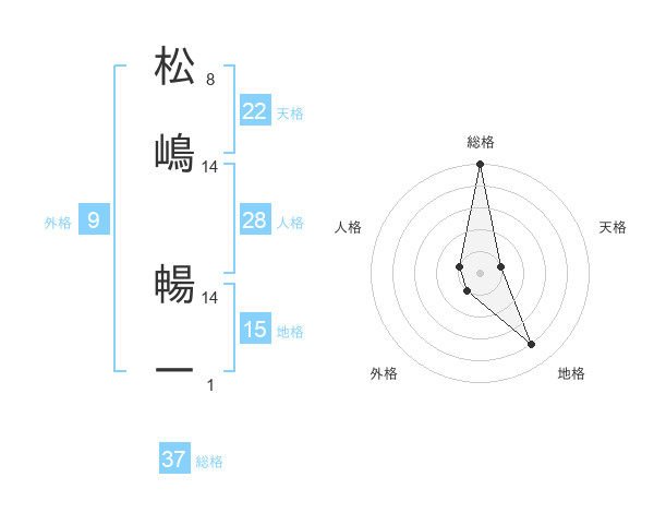 松嶋 暢一さんの総格は37画の5点