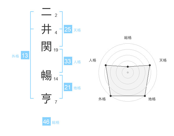 二井関 暢亨さんを姓名の画数から五運を鑑定