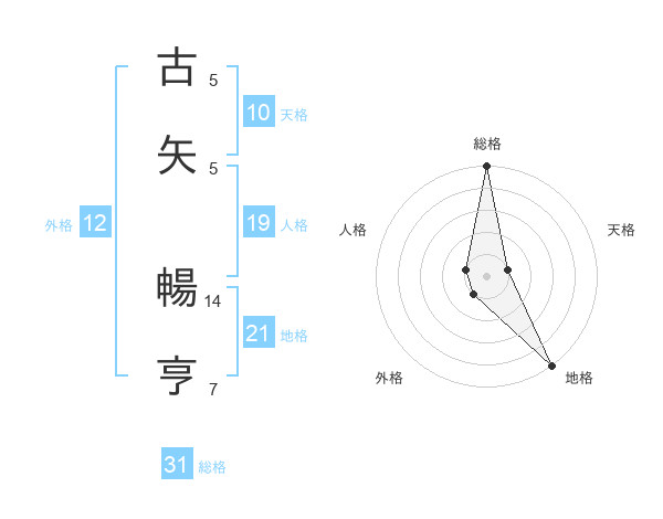 古矢 暢亨さんの総格は31画の5点!