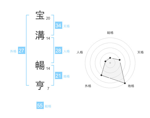 宝溝 暢亨さんの地格は21画の5点!