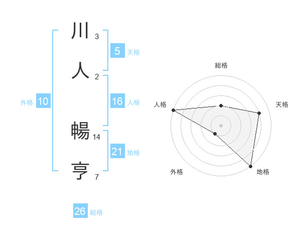 川人 暢亨さんの総格は26画の2点!