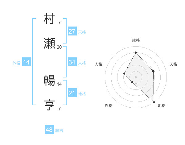 村瀬 暢亨さんの総格は48画の4点!