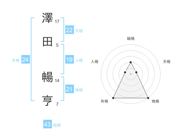 澤田 暢亨さんの天格は22画の1点!